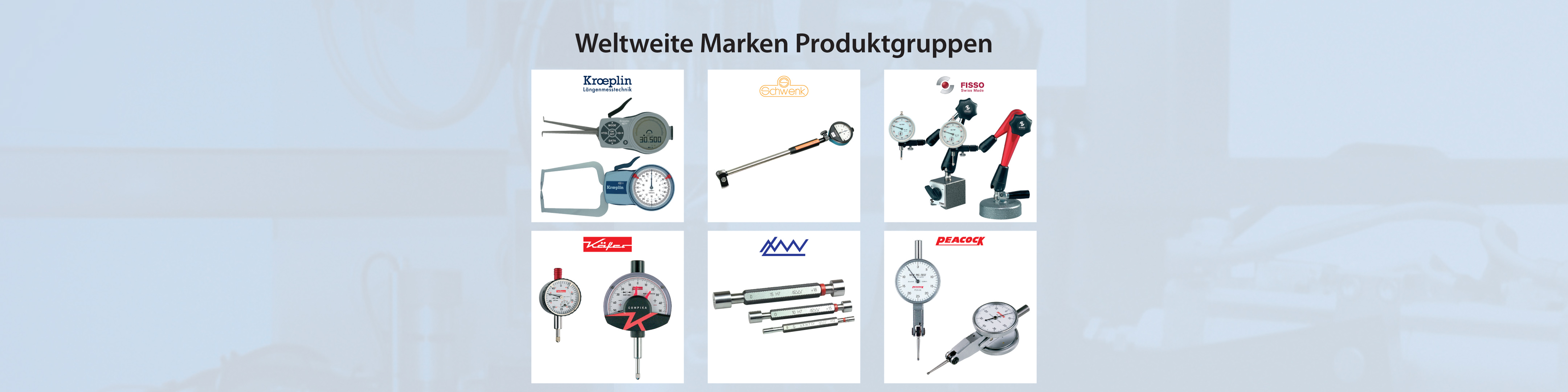 Eine große Auswahl Qualitätsprodukten von bekannten Herstellern wie Fisso (Messuhrstative), Käfer und Peacock (Messuhren), LMW (Lehren), Martin + Tschopp (Prüfstifte), Schwenk und Krœplin (Innen- und Außenmessgeräte) und Helios-Preisser und DEMM (Messgeräte).